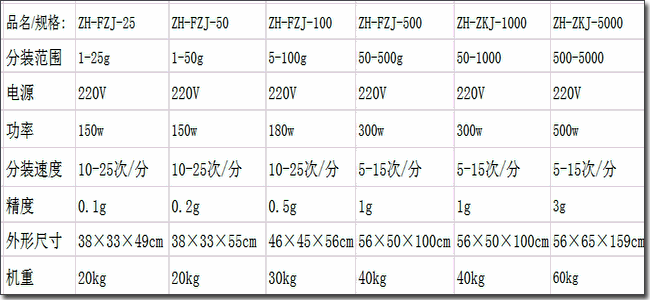 粉劑分裝機(jī)可選型號: